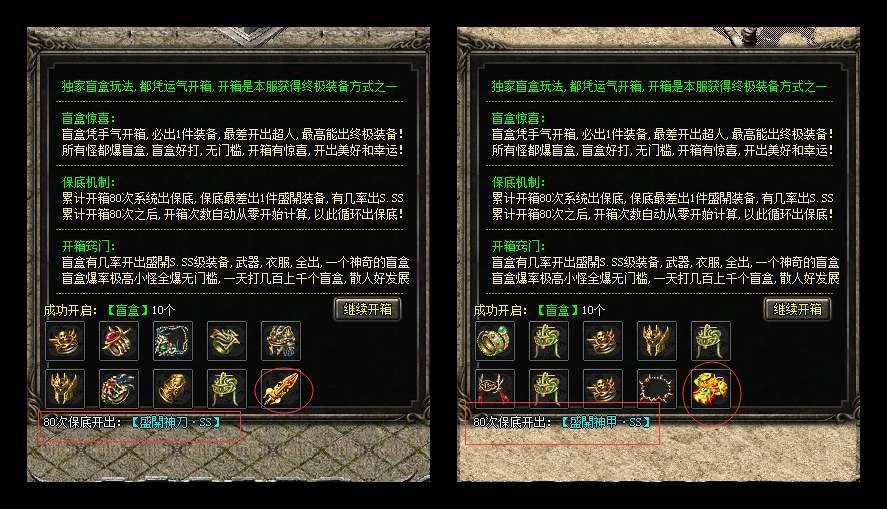 【装备爆率】:本服务器主要以寻BOSS打宝乐趣,请注意各项活动与每个地图的BOSS刷新,合区后开放BOSS之家! |